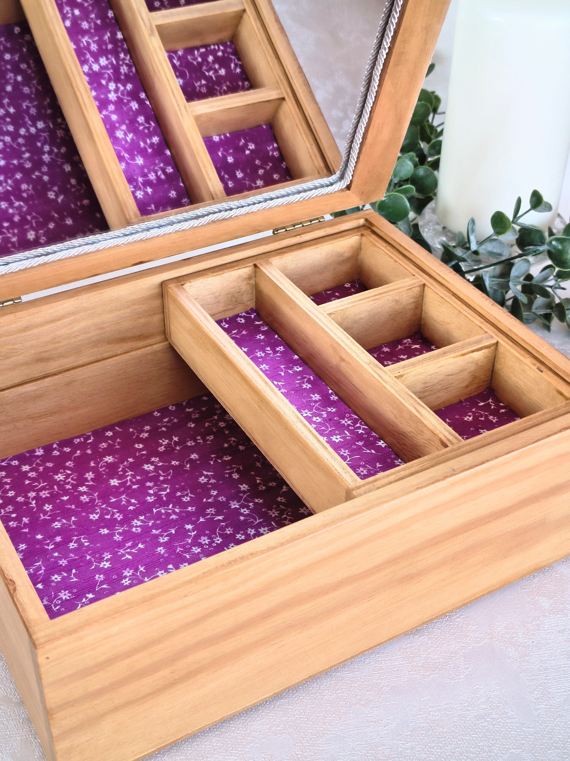 A Caixa Guarda-joias / Maquilhagem Glicínias é mais do que um simples guarda-joias: é um objeto decorativo único, pensado para mulheres que valorizam detalhes e que desejam rodear-se de beleza no quotidiano.