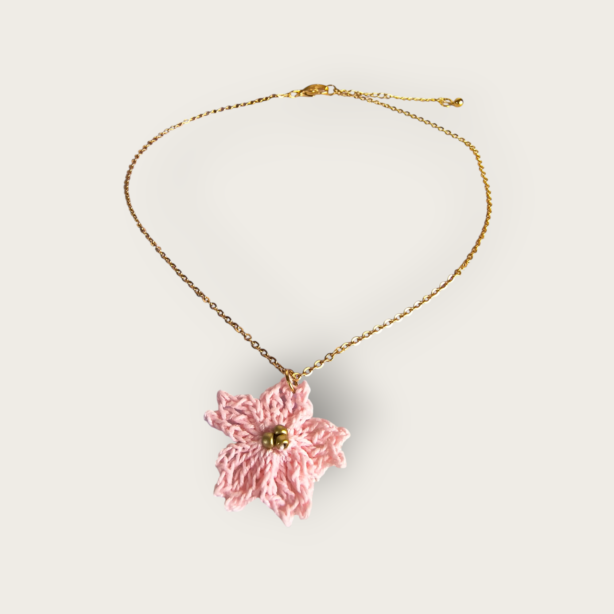 Em sintonia com a delicadeza oriental, o Colar “Sakura” apresenta um fio em aço inoxidável dourado, ajustável entre 42 e 47 cm, e um pendente com flor de cerejeira delicada em croché e missangas.