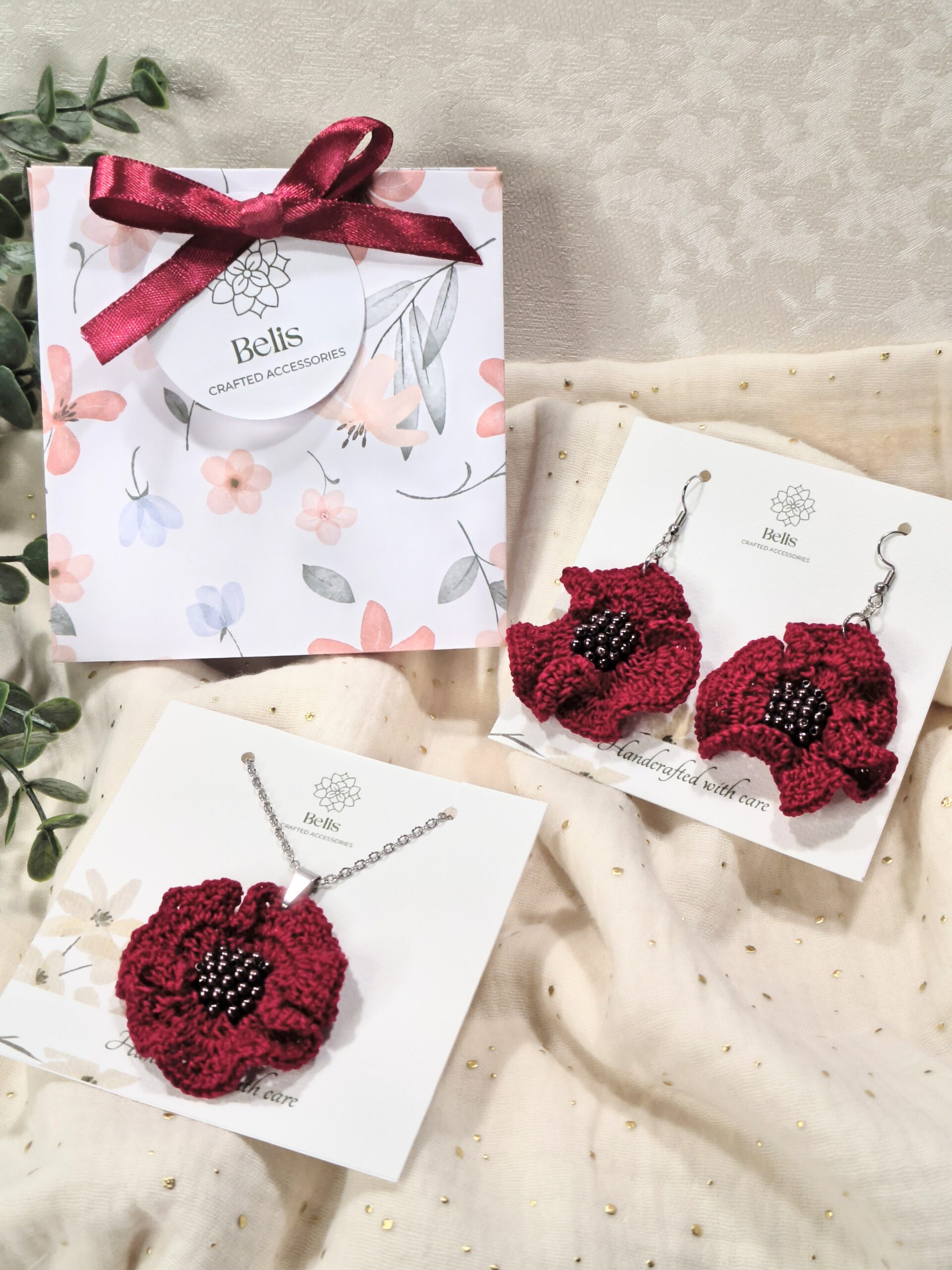 O Conjunto Papoila de Flandres é ideal para quem gosta de acessórios com personalidade, perfeitos para ocasiões especiais ou para elevar um look simples com um toque artístico e emocional.