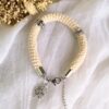 Um acessório com atitude e significado! A Pulseira Tubular Lucky combina um estilo moderno com inspiração étnica, numa peça artesanal em croché com fio de algodão. O seu design tubular cria um visual marcante e confortável, enquanto as duas contas metálicas com motivos étnicos acrescentam textura e autenticidade.